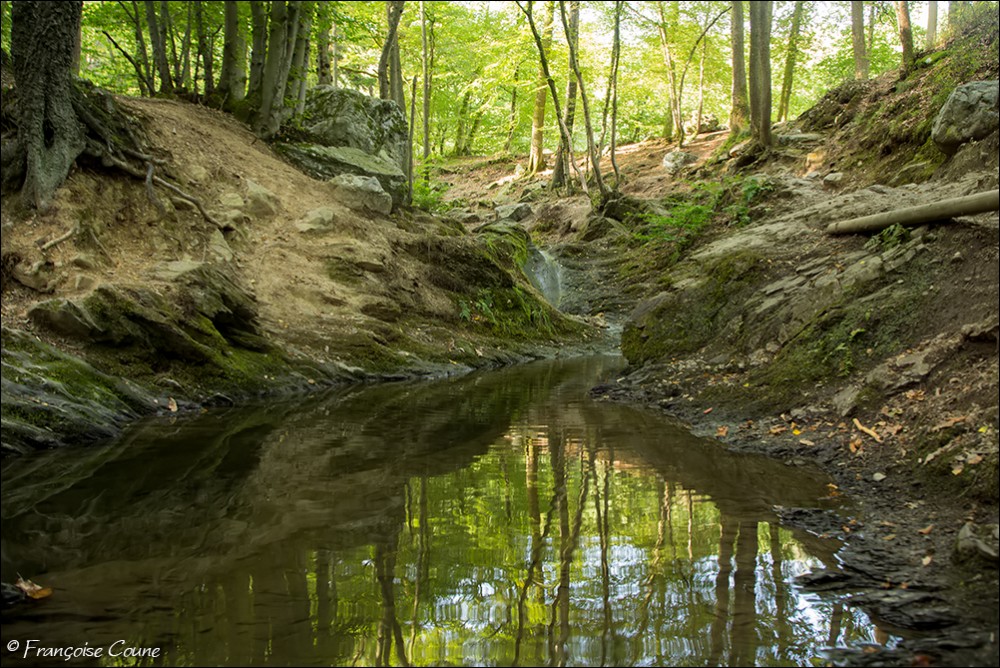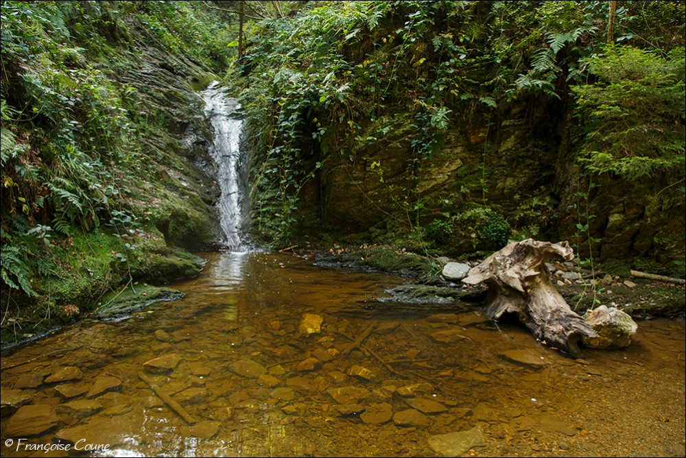 Its original name is actually "Doulneux" (in Latin Dulnosus) reminding that it comes from an alder grove (wood planted with alders). This surname already appears in 647 in a charter of Sigebert III, king of the Franks of Austrasia. During a mapping carried out during the occupation by Republican France, a cartographer confused the name of the stream by mistakenly attributing the name of a land where it emerges "En Inglin spau" (The source of Inglin). The Ninglinspo flows between Vert-Buisson (municipality of Theux) and Sedoz-Nonceveux (municipality of Aywaille). Torrential, it circumvents enormous blocks of quartzite, shaping here and there a set of successive “vats” or “baths” with evocative names like the Diana bath, the Otter bath, the Hermes bath, the Naïades, the broth (or waterfall) of the Chaudière (tributary stream of the Ninglinspo), the Stag bath or the Venus bath. Over the 3 km of its course, the Ninglinspo descends from an altitude of 420 m to an altitude of 170 m, i.e. a drop of 250 m, making it one of the fastest rivers in Belgium with a average slope of 8%. It flows into the Amblève which has just crossed the Quarreux Fund. |